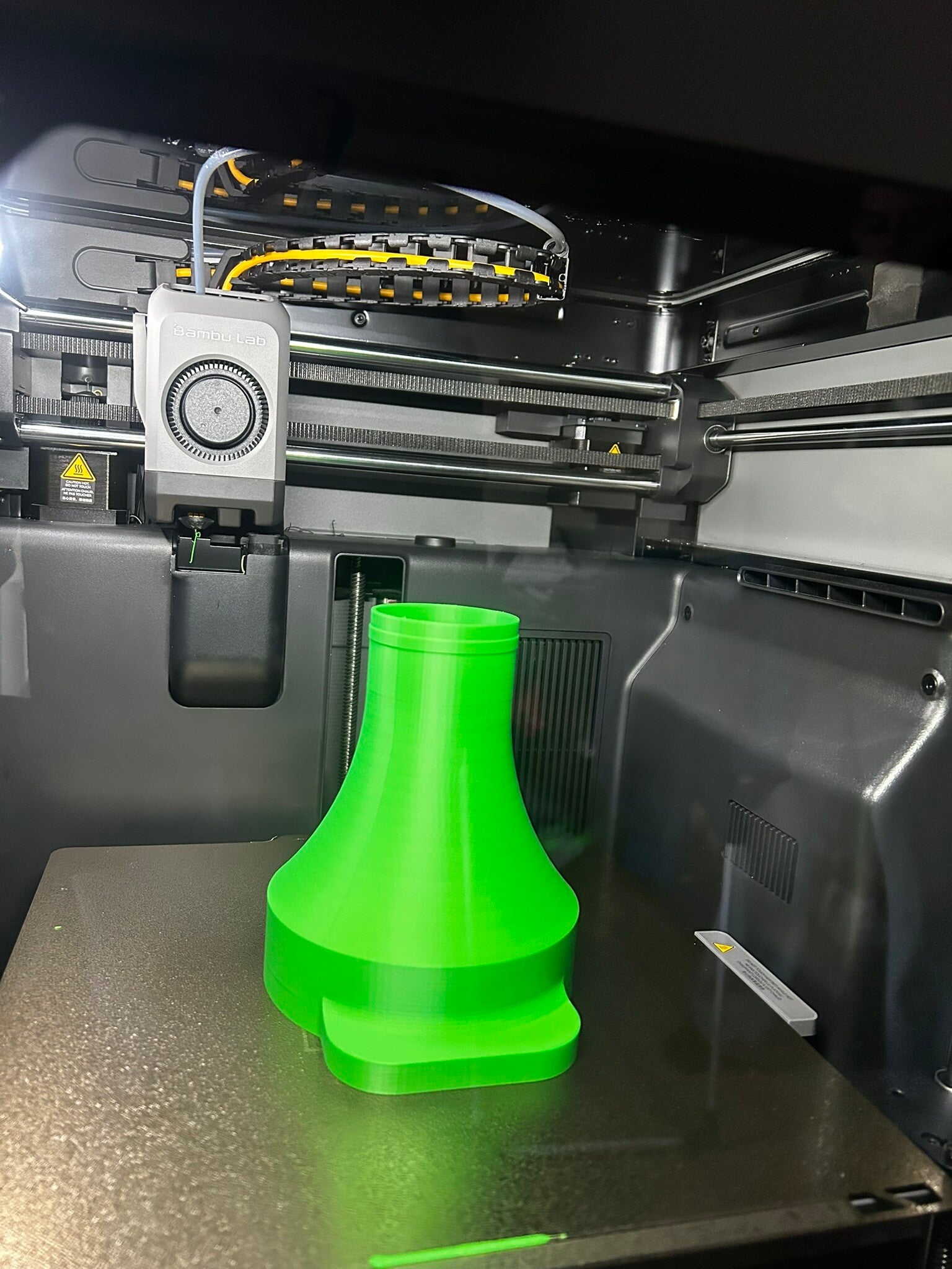 We beschikken over een Bambu P1S printer. Deze heeft een bouwvolume van 250x250x250 mm.